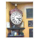 A watercolor of an old British train clock.