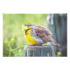 Un western méadowlark moelleux est assis sur un billet au parc Keyhole State Park dans le Wyoming. Photographie de Karla Chrast