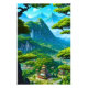 Il y a des palais et des temples chinois nichés dans une vallée entourée de montagnes et de nature.