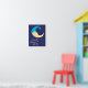 Monsieur Lune est prêt à s'endormir alors qu'il regarde une étoile hypnotique suspendue au bout de son bonnet de nuit. Un bleu rêveux doux et un jaune crémeux favorisent les doux rêves, bébé.