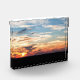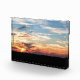 Die Stadt Cleveland, die durch einen schönen, lebhaften Sonnenuntergang von 35 km entfernt hervorgehoben wird