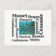 Wortmosaik des wichtigsten Impressionisten: Bazille, Caillebotte, Cassatt, Cézanne, Degas, Guillaumin, Manet, Monet, Morisot, Pissarro, Renoir, Sisley zusammen mit der ikonischen Water Lilies von Monet.