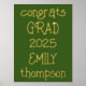 Congrès informel Grand Nom 2025 Graduation Green Luxury Real Foil dans votre choix de l'or ou de l'argent dans la typographie informelle pour célébrer votre grade sur arrière - plan vert foncé que vous pouvez changer à une autre couleur si vous le souhaitez.