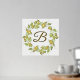 Impression à feuille chic, avec une feuille d'or et une couronne verte, avec un monogramme à feuille d'or à une seule lettre, au milieu. Personnalisez la lettre pour une jolie petite idée cadeau.