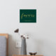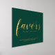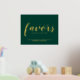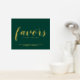 Script moderne Emerald Green et Gold Wedding Favors Signe avec le titre "Favor" en véritable feuille d'or police de script moderne avec détails en vrai feuille d'or police sans serif moderne sur arrière - plan vert émeraude.