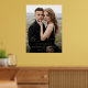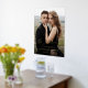 Élégant panneau de bienvenue de mariage photo avec "Welcome" affiché dans une couche de script de calligraphie de feuille d'or et une photo fiançailles verticale. Personnalisez le panneau d'accueil mariage moderne avec vos noms et votre date de mariage en caractères gras et dorés. Le panneau de mariage en feuille d'or est en coordonnées avec notre collection de mariage Modern Elegance.