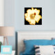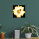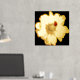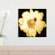 Élégant imprimé en feuille avec une grande fleur dorée, avec un coccinelle rouge et noir, contre un arrière - plan noir. Belle impression pour tous les amoureux de la nature.