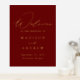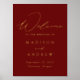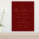 Elégant signe d'accueil de mariage avec "Welcome" dans un script de calligraphie de feuille d'or moderne avec un arrière - plan bordeaux rouillé (ou couleur de votre choix). Personnalisez le signe mariage de feuille d'or et de bordeaux en ajoutant vos noms, votre date de mariage et votre emplacement mariage. Le panneau d'accueil vertical est conçu pour coordonner avec notre collection de mariage Modern Elegance et est disponible en d'autres couleurs.
