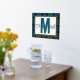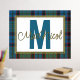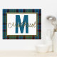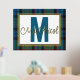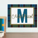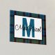 Belle impression de papier tartan plaid, avec une feuille d'or encadrée dans la zone de texte, contre l'arrière - plan écossais motif écossais MacNicol chasse tartan. Un grand monogramme fédéral bleu à lettre simple et un nom de feuille d'or sont prêts à être personnalisés.