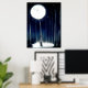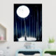Impression de feuille élégante avec des oeuvres de la lune illuminant une forêt de bouleaux rehaussée de feuille d'argent.