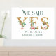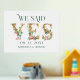 Marquez votre journée spéciale avec ce design charmant. Nous avons dit-Oui- Lettre de ton or accentuée de bouquets de fleurs roses et de typographie verte directe.