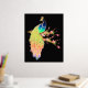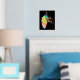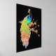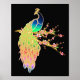 Impression de feuille d'or, avec un paon coloré assis sur une branche de cerisier fleuri, contre un arrière - plan noir. Impression étonnante qui va bien dans n'importe quelle pièce.