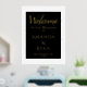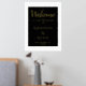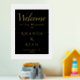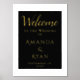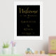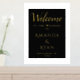 Simple Élégant Black Welcome Script Mariage Gold Foil Imprimer. Design simple avec script tendance en feuille d'or sur un arrière - plan noir. Élégant signe d'accueil de mariage. Personnalisez tout le texte, les noms des mariés et des mariés et la date du mariage.