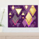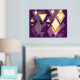 Obtenez votre véritable imprimé de feuille d'or 18x24 pouces avec un triangle violet forme des éléments arrière - plans et des éléments de triangle de feuille d'or. C'est un design luxueux et minimal pour améliorer votre maison. Conçu par Hobinishop
