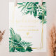 Panneau d'accueil de la douche nuptiale en aquarelle de palme vert tropicale, avec bordure géométrique en faux or.