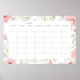 Un grand calendrier mensuel sous forme d'affiche. Les dessins présentent les jours de la semaine dans un format mensuel entouré d'une belle bordure florale à l'aquarelle.