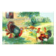 Thanksgiving Celebration Design montre une scène d'une ferme où il y a de la Turquie, des poules et du poulet. Ce design coloré est personnalisable et est disponible pour une variété de produits. L'ajout de texte est facultatif.