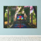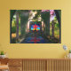 Une ancienne église en pierre se dresse en ruines au milieu de l'herbe et des fleurs d'une colline ensoleillée, mais le vitrail colore toujours la lumière du matin avec le design d'une croix rouge contre un lever de soleil lumineux. Les vieilles arches en pierre sont cassées, mais les branches des arbres en fleurs encadrent la fenêtre.