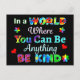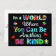 Inspiration Zitat von "In einer Welt, in der man alles sein kann, was KIND sein kann", um Menschen mit Autismus-Spektrum-Störung zu verstehen und Freundlichkeit zu ihnen zu fördern.