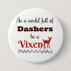 Niedlicher und lustiger Neuheit Weihnachtsentwurf auf einem Knopf ist- das perfekte Geschenk für alle Damen auf Ihrer Weihnachtsgeschenkliste oder Ihrem bling Weihnachten hinzuzufügen. Ausrüstungsbeschreibungstext, der in einer Welt voll von Dashers sagt, ist ein Vixen. Der Schriftart ist mit Ausnahme von dem Wort Dasher schwarz, das in einem karierten Druck des schwarzen und roten Büffels und im Wort Vixen, der rot ist, Imitat-Glitter ist. Es gibt die Silhouette einer Damhirschkuh, die nahe bei dem Wort Vixen stehend ist, der auch der rote Imitat-Glitter ist. Dieser niedliche Weihnachtsentwurf machen ein wunderbares Geschenk für Ihre Ehefrau, Freundinnen, besten Freunde, etc.