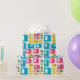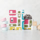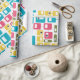 Dieses Verpackungspapier hat ein modernes Design von abgerundeten Rechtecken, von denen einige mit Sternexplosionen versehen sind, in Retrofarben Rot, Gold, Grün und Türkis. Wenn Ihnen das Design gefällt, aber andere Farben bevorzugen, dann schreiben Sie mir.