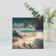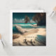 Türkisfarbenes Wasser und Palmen auf einer Postkarte mit weißem Sand. Zitat: "In Liebe mit dem Meer."