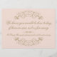Dekorative Wirbel und Schnörkel umrahmen dieses Vintage inspirierte Hochzeitszeichen / -karte. Rosa Blush und antikes Gold.