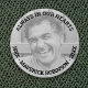 Personalisierter Gedenkknopf für die Beerdigung mit einem Foto Ihrer verlorenen Lieben, einem weißen Ovelay, dem Beileid-Sprichwort "immer in unseren Herzen", ihrem Namen und ihren Daten.