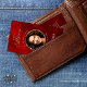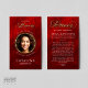 Eine spezielle "In Loving Memory, Forever in our Hearts" Gebetskarte, um das Gedächtnis eines geliebten Menschen zu ehren, das romantische rote Rosen, ein extravagantes Gold und Weiß-Drehbuch und ein goldenes kreisförmiges Foto enthält. Personalisieren Sie die Karte nach Ihren Wünschen.