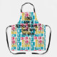 Diese Schürze hat ein modernes Design von abgerundeten Rechtecken, von denen einige mit Sternexplosionen versehen sind, in Retrofarben Rot, Gold, Grün und Türkis. Wenn Ihnen das Design gefällt, aber andere Farben bevorzugen, dann schreiben Sie mir.