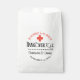 In der Kranken & in der Gesundheit Niedliche Hochzeit oder Brautparty Emergency First Aid Hangover Kit Aufkleber. Rot, Schwarz & Weiß Farben Anpassen mit den Namen und dem Veranstaltungsdatum der glücklichen Paare. ©2023 Miss Sassy Party Designs