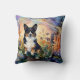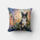 This image features a black-headed tri-colored corgi amidst a vibrant field of flowers. The artwork is rendered in a fluid alcohol ink style, creating a unique visual effect.