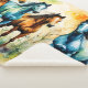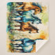 This image shows a herd of colorful horses in the pasture, blending whimsical drawing and abstract art elements in a palette of complementary colors.