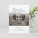 Weiße und blaue Beerdigungsprogrammordnung zweiseitig einfach in unseren Herzen für immer Zeremonie-Programme. Ersetzen Sie einfach den Mustertext und den Foto-Inhaber durch Ihre eigenen Foto- und Beerdigungsinformationen. Original Typografie und in unseren Herzen für immer Grafik Design von Sarah Trett für www.mylittleeden.com (Foto-Guilherme Stecanella auf Unsplash Model Foto ist nur ein Platzhalter-Bild für Sie zu ersetzen).