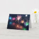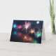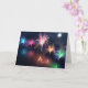 Cinq vapeurs de feux d'artifice se reflètent dans l'eau sombre sous-jacente - une explosion de bleu pâle, rose rose, or brillant, vert menthe, et au centre étincelle de toutes les couleurs de l'arc-en-ciel.