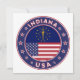 Abzeichen von Indiana mit Flagge von Indiana und Fahne von US-Farben, abgerundete Form. Emblem von Indiana. Siegel von Indiana. USA Staaten Collection Indianapolis, Fort Wayne, Evansville, South Bend, Carmel, Fishers, Bloomington, Hammond, Gary, Lafayette