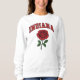 This design features a bold, varsity-style "INDIANA" arc set above a classic, detailed red rose. The collegiate typography and traditional floral illustration combine for a look that feels both timeless and spirited, making it perfect for local pride apparel, graduation gifts, or vintage-inspired home decor.