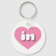 Diese Schlüsselkette besticht durch ein pulsierendes rosa Herz mit fett-weißen, abgerundeten Kleinbuchstaben, eine spielerische Abkürzung für Indiana, den Hoosier Staat.