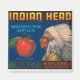 Vintages Fruchtkäfigetikett für Washingtoner Äpfel mit einem in Federkopfkleid illustrierten Amerikanische Ureinwohner.