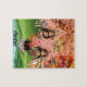 Indische amerikanische Mädchen Camping mit einem Hirsch und Wolfswald Tiere umgeben von bunten Laubbäumen und rosa Blumenzelten.