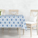 Unsere gemusterte Tischdecke hat das handgeblockte Aussehen traditioneller indigofarbener Textilien, mit einem modernen geometrischen horizontalen Diamantmuster in mittel denim blau und knusprig weiß. Suchen Sie nach diesem Muster in einer anderen Farbe? Kontaktieren Sie mich über den Link "Diesen Designer Gefragt" auf dieser Seite.