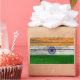 Dieses robuste Design zeigt die indische Flagge, die auf alten Holzbrettern gemalt wurde. Die Holzplanken haben einen verwitterten Look, wobei die Schälfarbe überall sichtbar ist. Dieses einzigartige indische Flaggenmuster ist eine einzigartige Möglichkeit, Ihren Patriotismus zu zeigen