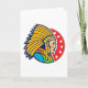 Ein wunderschönes Design eines amerikanischen Ureinwohners Chef. Dieses Design zeigt nur den Kopf in vollem indianischen Haupt-Kopfbedeckung und sieht wirklich cool aus. Der Häuptling ist Set auf einem roten Hintergrund, der einige Starts hat. Ein großartiges Design eines indianischen Häuptlings, das auf diesen Grußkarten großartig aussieht