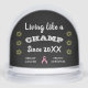 Leben wie ein Champ seit YYYY, Brustkrebs stolze Überlebende | rosa Band, leuchtend gelbe Sterne | vollständig anpassbarer Text und Hintergrund