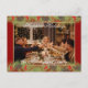 Einzigartige, klassische, trendige, hübsche und dekorative Ferienkarte. Niedlich Happiest Holidays begrüßen Text und Raum, um mit einem Foto- und Familiennamen (oder individuellen Namen) und einer Nachricht Ihrer Wahl, gerahmt von einem Pinecon, Kiefernnadeln und roten Beeren Karikaturen Muster auf einem klassisch dunkelroten Hintergrund. Und eine anpassbare Saison Gruß Gedicht auf der Rückseite der Karte.