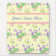 Ein hübsches, individualisierbares Blumenmousepad mit rosa Rosenmuster, cremig weißem Mock Orange Blossom und lila Lavendel, von Judy Adamson handgemalt.