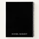 Dieses links Notizbuch ist mit einem klassischen schwarzen Cover mit dem Schulfach oder mit dem Text in weißer Schrift am unteren Rand versehen. Die Spirale befindet sich auf der rechten Seite, sodass sie perfekt für die Reste geeignet ist. Dieses Notizbuch mit vielen Seiten im Inneren eignet sich hervorragend für die Organisation von Schulaufgaben und das Mitmachen von Noten im Klassenzimmer.