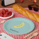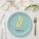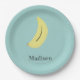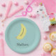 Individuelle Name bemalte Banane auf blau Pappteller