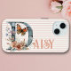 Individuelle Name | Floral Butterfly Initial Peach Case-Mate iPhone Hülle
