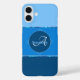 Individuelle Name Monogram Three Blue Ombre Stripe iPhone 16 Plus Hülle
